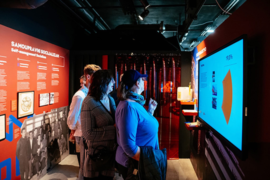 Postav muzeja podijeljen je u više tematskih cjelina - uvodna Bauk kruži Europom donosi teorijski osvrt na pravce razvoja socijalističke ideje i prakse te smješta priču u vrijeme prve Jugoslavije, s naglaskom na djelovanje Komunističke partije. Druga cjelina Rat i revolucija, objašnjava turbulentne događaje 1940-ih godina, djelovanje zaraćenih strana, uspostavu novog sustava i početak jedinstvenog jugoslavenskog puta u socijalizam. Tema Stvaranje novog društva prikazuje osnovne odrednice svakodnevnog života u socijalističkoj Jugoslaviji – od gospodarstva, zdravstva, obrazovanja i urbanizacije do odnosa prema religiji i državne kontrole. U sklopu ove cjeline nalazi se i rekonstrukcija dvosobnog stana s brojnim eksponatima, primjerima potrošačke kulture.