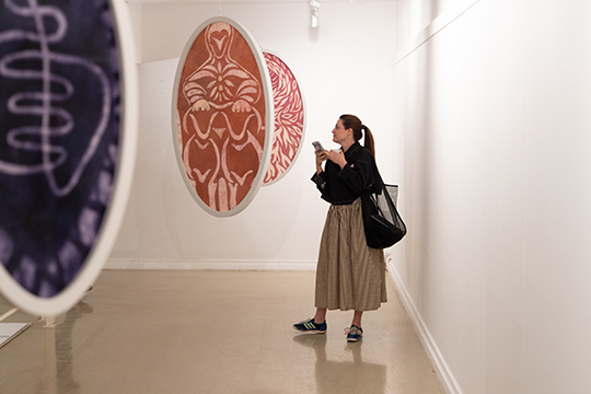 Novi ciklus radova naziva Boginja dosljedno se nadovezuje na njezina recentna istraživanja materijala, prirode i simboličkih sustava vidljiva u ciklusima Trag boje i Sunčev vrt. Dok je u Tragu boje umjetnica reducirala pejzaž na njegove energetske i simboličke karakteristike, koristeći pigmente biljnog podrijetla kao izravne tragove prirode, a u Sunčevom vrtu proširila taj interes prema cikličnosti vremena, biljnim vrstama i solarnim simbolima kroz batik tehniku, u najnovijem ciklusu kojim se predstavlja u Galeriji Galženica fokus se dodatno pomiče od pejzaža kao vanjskog fenomena prema unutarnjim, arhetipskim strukturama čovjeka i njegovog odnosa s prirodom.